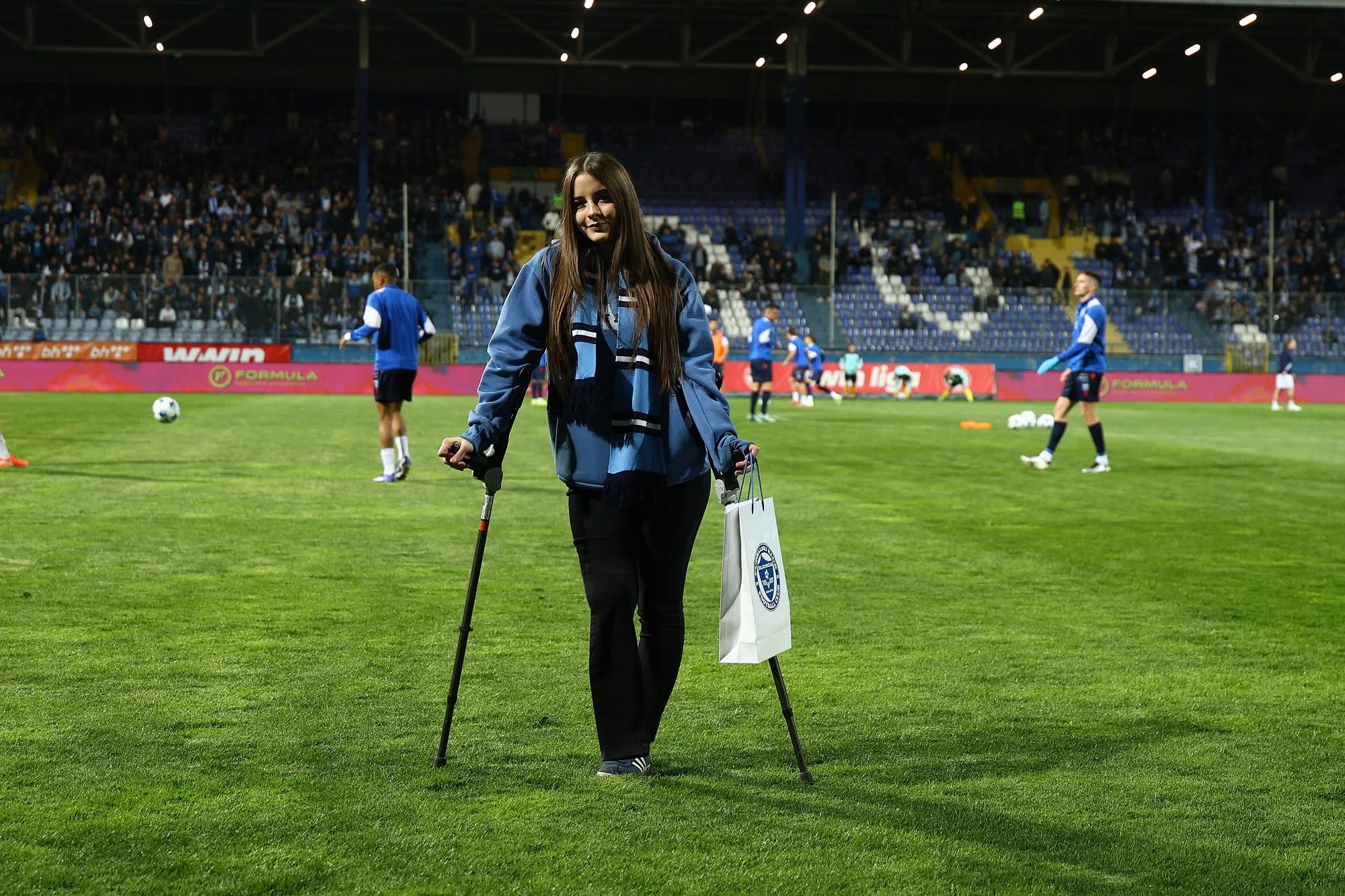 Šesnaestogodišnja Ella Jovanović večeras je svečano dočekana na stadionu Grbavica uoči utakmice domaćeg prvenstva između Željezničara i Posušja.