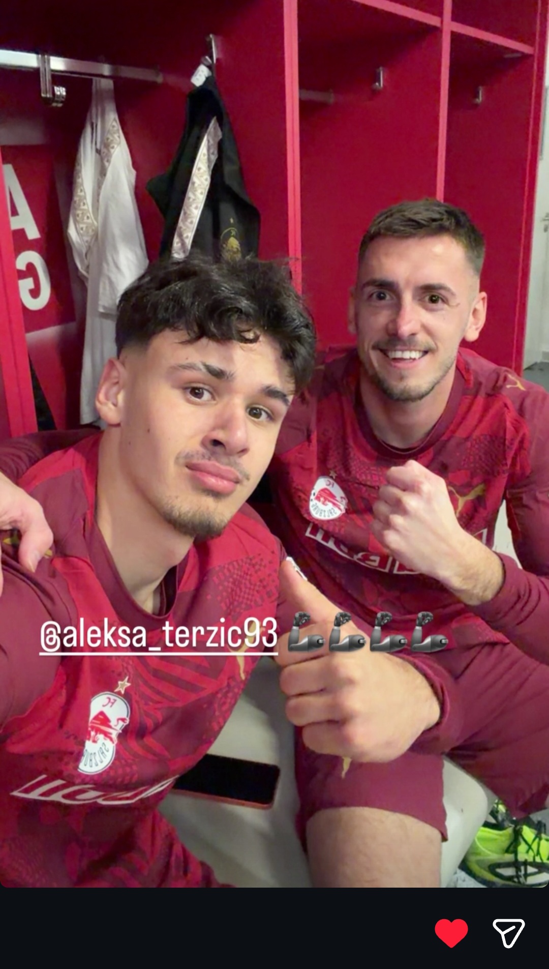 Nakon utakmice, Alajbegović je imao i emotivan trenutak van terena. Na svom Instagram storyju objavio je fotografiju iz svlačionice sa saigračem Aleksom Terzićem, uz stihove pjesme Nervoznog Poštara: „Utopli se dušo kad budemo bježali, jer u Bosni padaju hladni snjegovi…“.