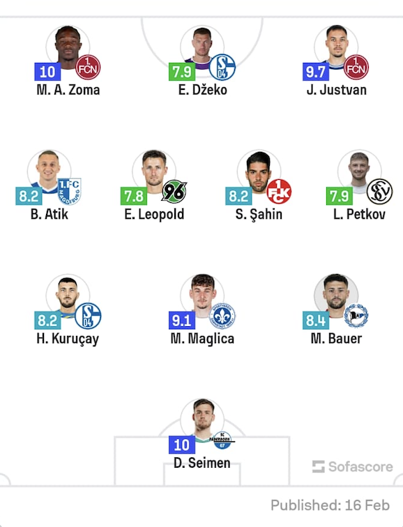 Nakon što je već bio među najboljih jedanaest u prethodnom kolu, iskusni napadač ponovo je dobio isto priznanje poslije utakmice 22. kola protiv Holstein Kiel.