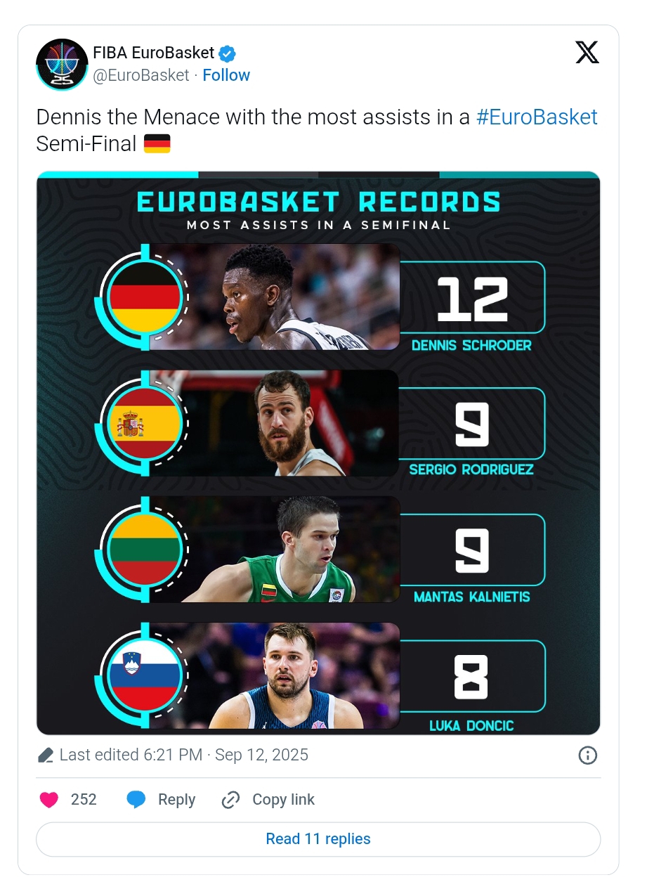 Schroder je postao rekorder Eurobasketa po broju asistencija u polufinalnim mečevima – njegovo 12 dodavanja nadmašilo je prethodni rekord od devet, koji su dijelili Sergio Rodriguez i Mantas Kalnietis.